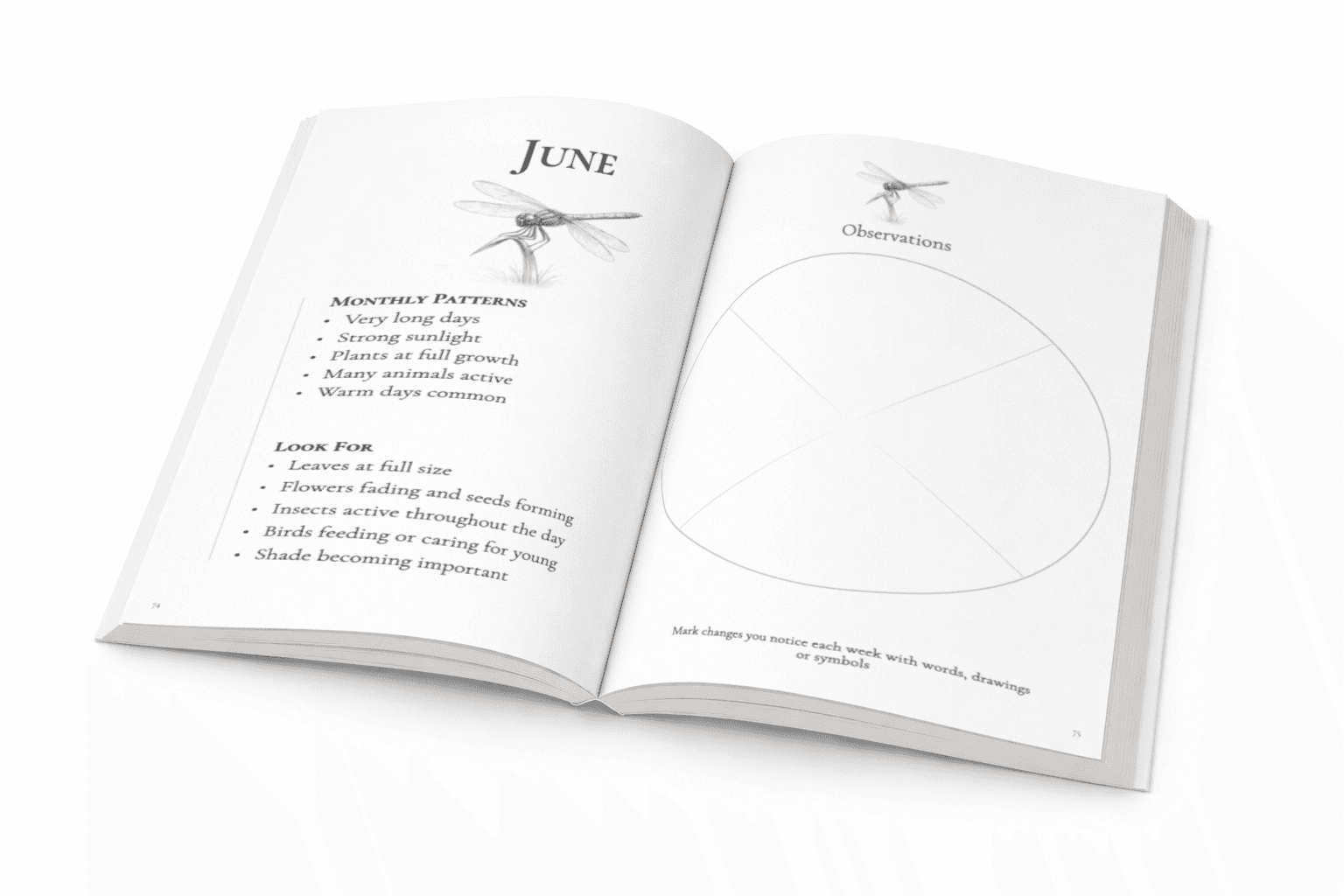 Young Explorer’s Journal encourages curious noticing, lists, sketches, and quiet reflections on place, weather, and small changes in nature. For children and parents alike, this journal is a companion for looking closely—offering gentle prompts and spacious pages for a year’s worth of discoveries.